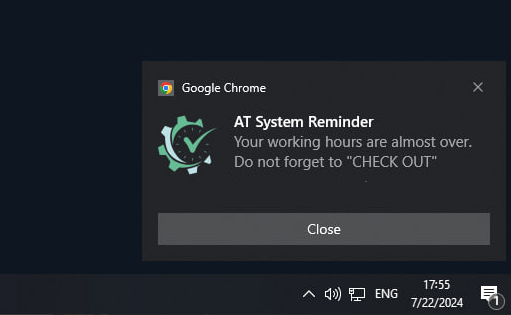 Once you have configured notifications, the system will be able to send you reminders to perform Check IN or Check OUT as needed.