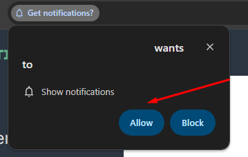 After pressing the OK button, your browser will prompt you to enable notifications from the website a-tracker.net: