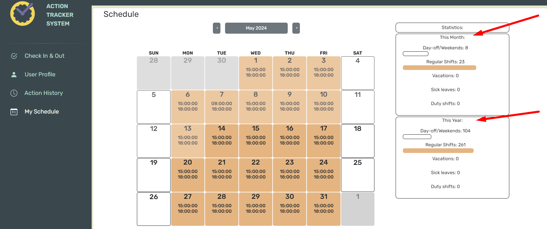 My Schedule section is intended to plan your schedule for the near future and gives you the opportunity to