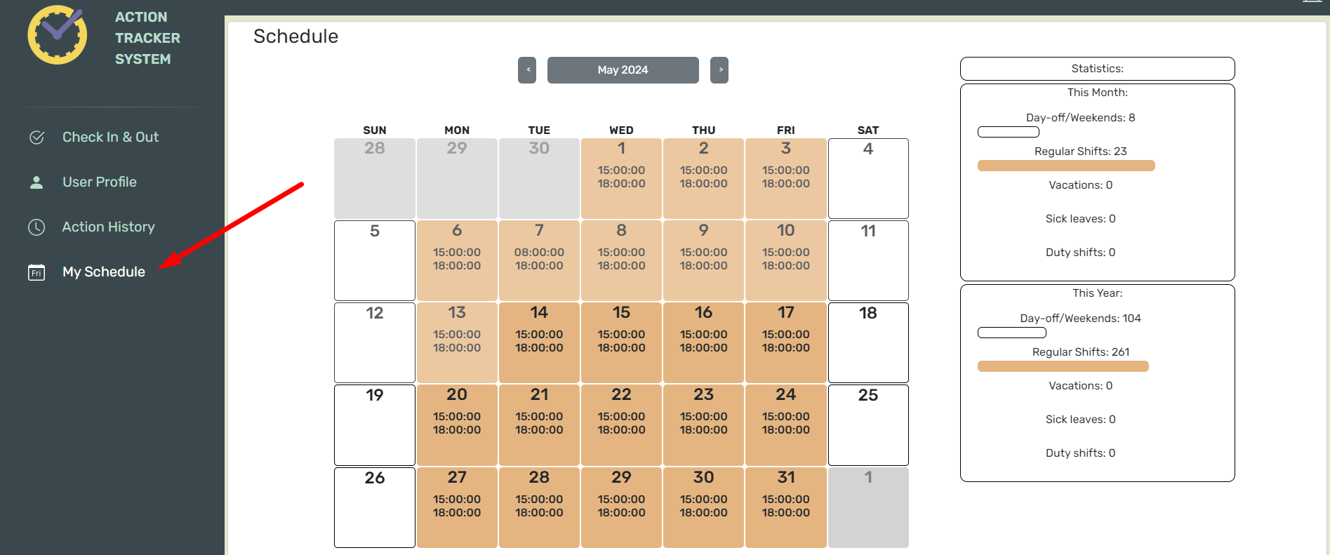 - отметить регулярные смены,
