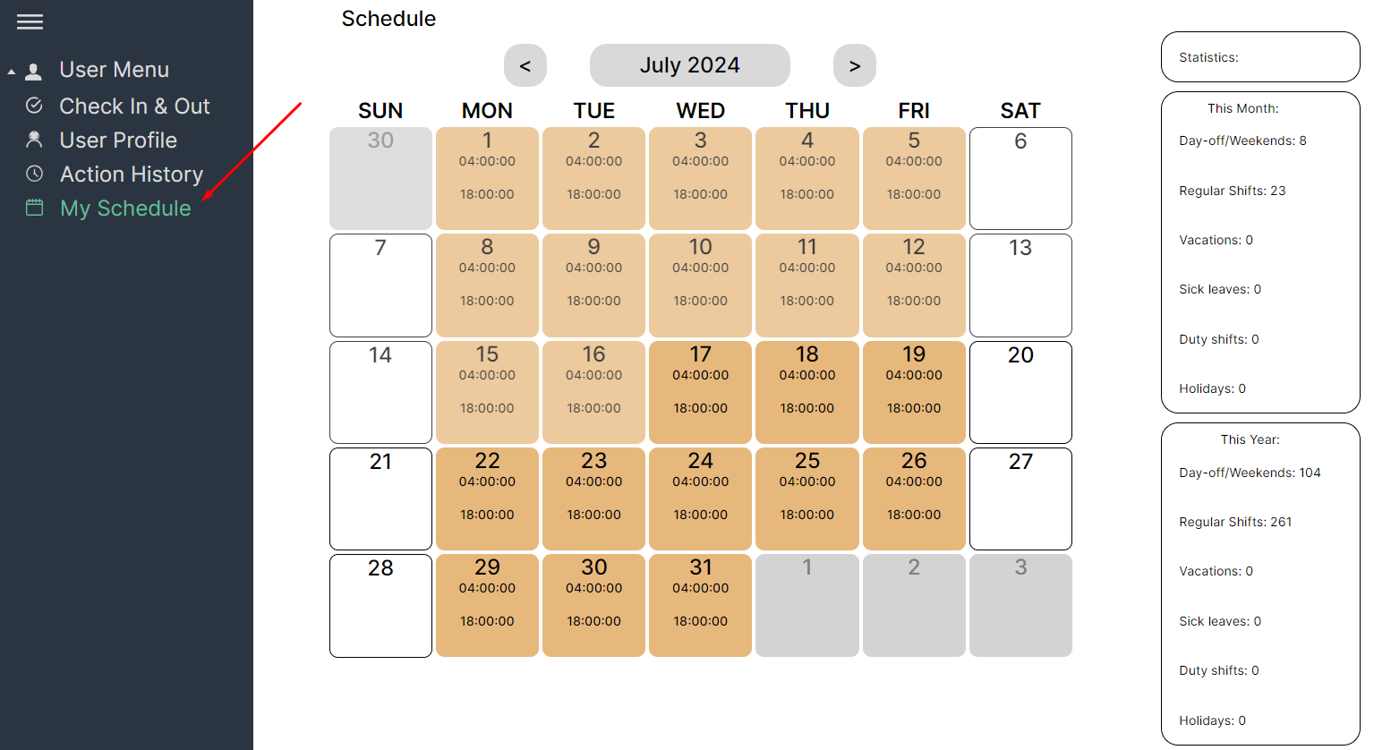 - отметить day-off/выходные (если график занятости отличается от стандартного),