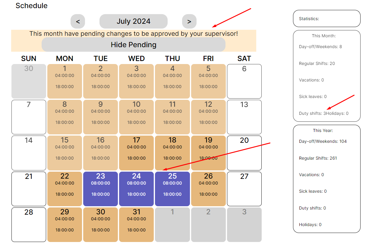 Выбирая тип дней, которые необходимо внести в график занятости, можно обозначить желаемые даты для выбранного события.