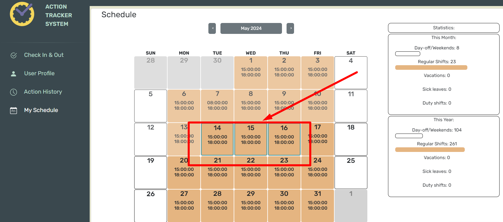 Вибравши тип днів, які необхідно додати до графіка зайнятості, можна вказати бажані дати для обраної події.